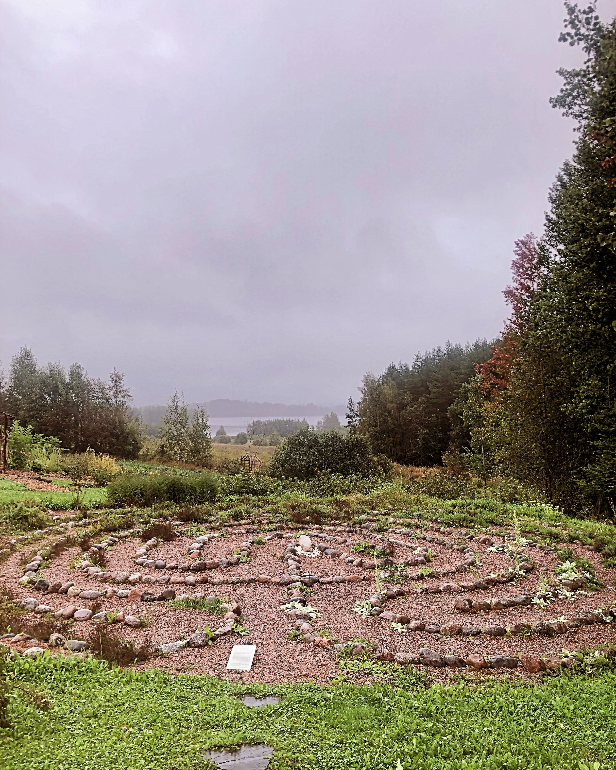 Teemme kävelymeditaation labyrintin polkuja kulkien osana jatulintarhaseremoniaa.